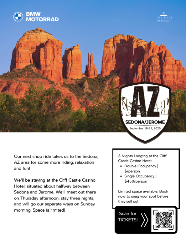 Ticket Page: https://merch.longbeachbmwmotorcycles.com/products/2025-sedona-ride-september-18-21