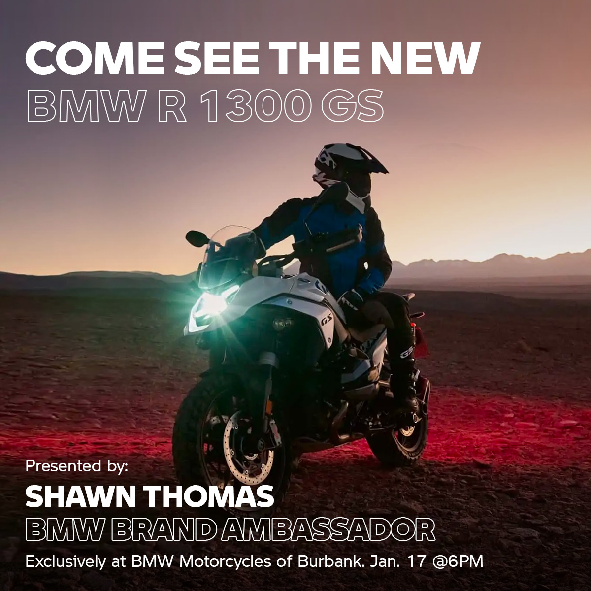 BMW Motorcycles of Burbank is excited to announce an exclusive event featuring the NEW BMW R 1300 GS, presented by BMW Brand Ambassador Shawn Thomas.