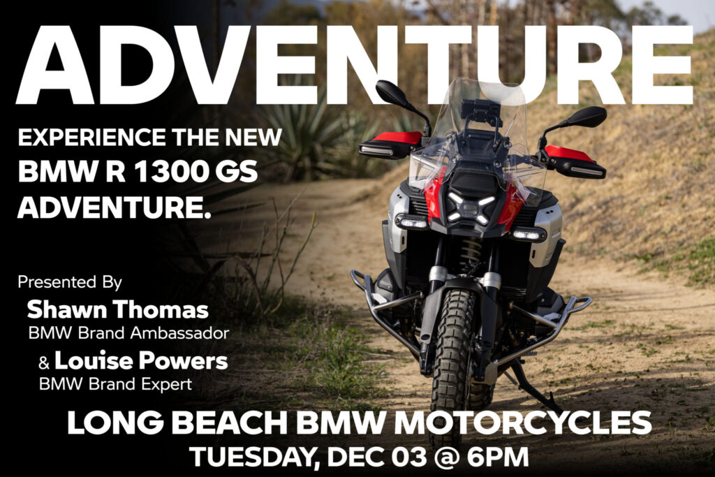 We are excited to host an exclusive event featuring the NEW BMW R 1300 GS ADVENTURE, presented by BMW Brand Ambassador Shawn Thomas and BMW Brand Expert Louise Powers! Together, Shawn and Louise will offer a brief history of the legendary GS Adventure and highlight features and technologies contained within the latest model from BMW Motorrad. This is your chance to see the new R 1300 GS Adventure and learn from the Pros. Don’t miss it!