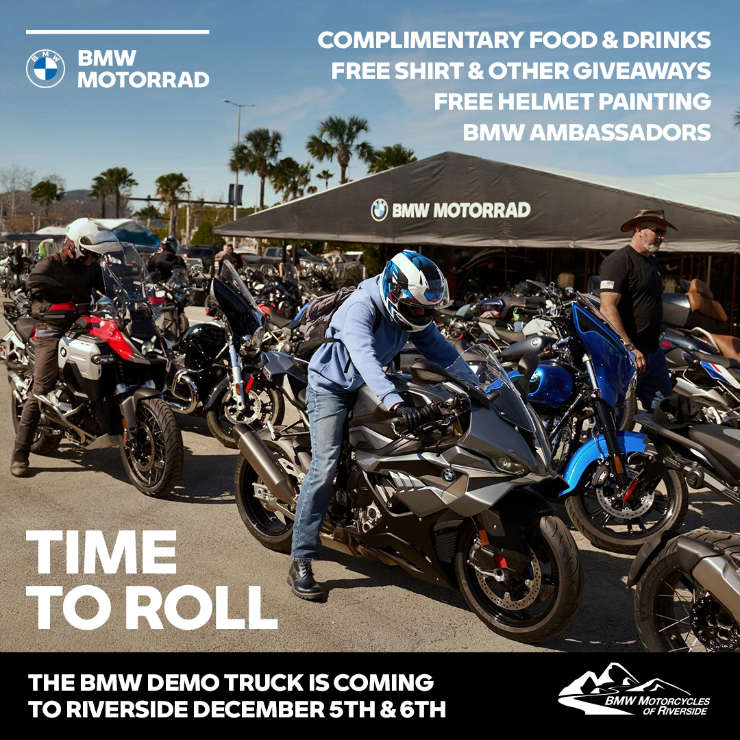 The BMW Motorrad demo fleet is coming to Riverside! Join BMW Motorcyles of Riverside on Friday, December 5th, and Saturday, the 6th, for the demo truck's first stop in SoCal... [Read More]